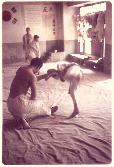 The Tatami (straw mats) on the concrete floor covered with canvas was the not-so-forgiving training surface. Techniques were learned by experiencing the pain and effectiveness of the technique over and over again from Master PARK.
